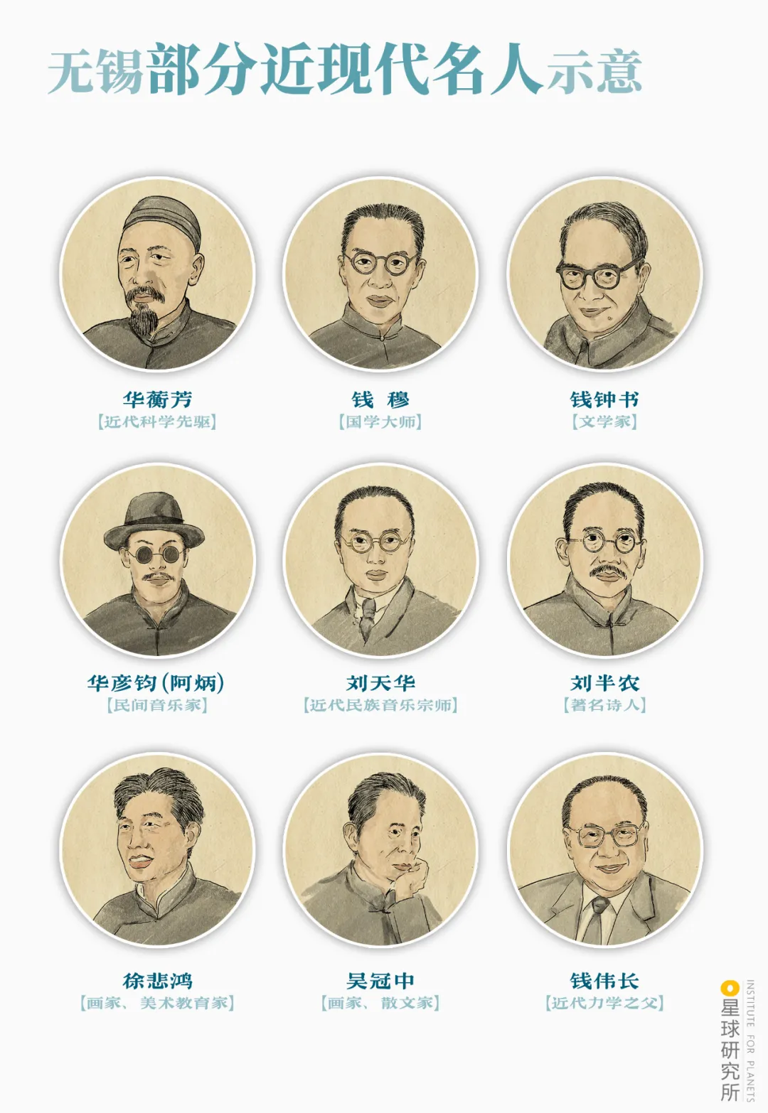 無錫近現代部分名人示意| 製圖@陳隨/星球研究所