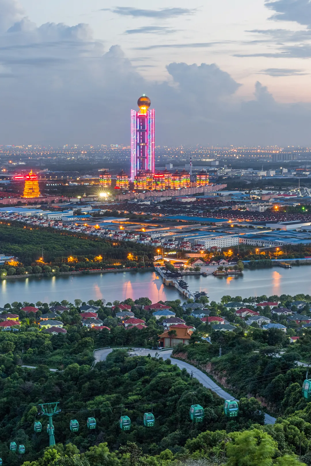 遠望華西村的地標建築龍希國際大酒店| 圖片來源@視覺中國