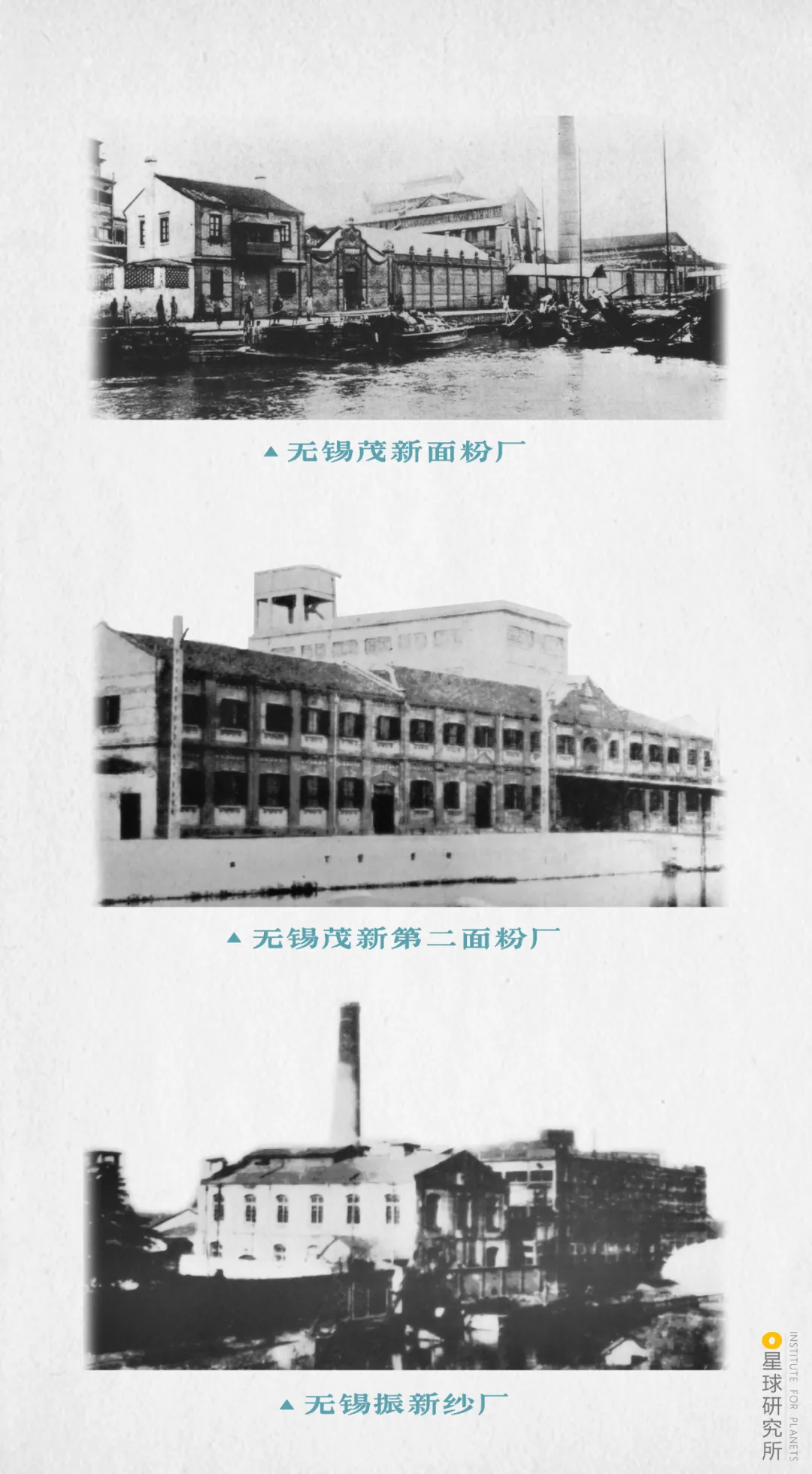 保興麪粉廠後改名為茂新麪粉廠,下圖中的工廠均為榮氏企業| 製圖@陳隨/星球研究所;圖片來源@無錫市圖書館