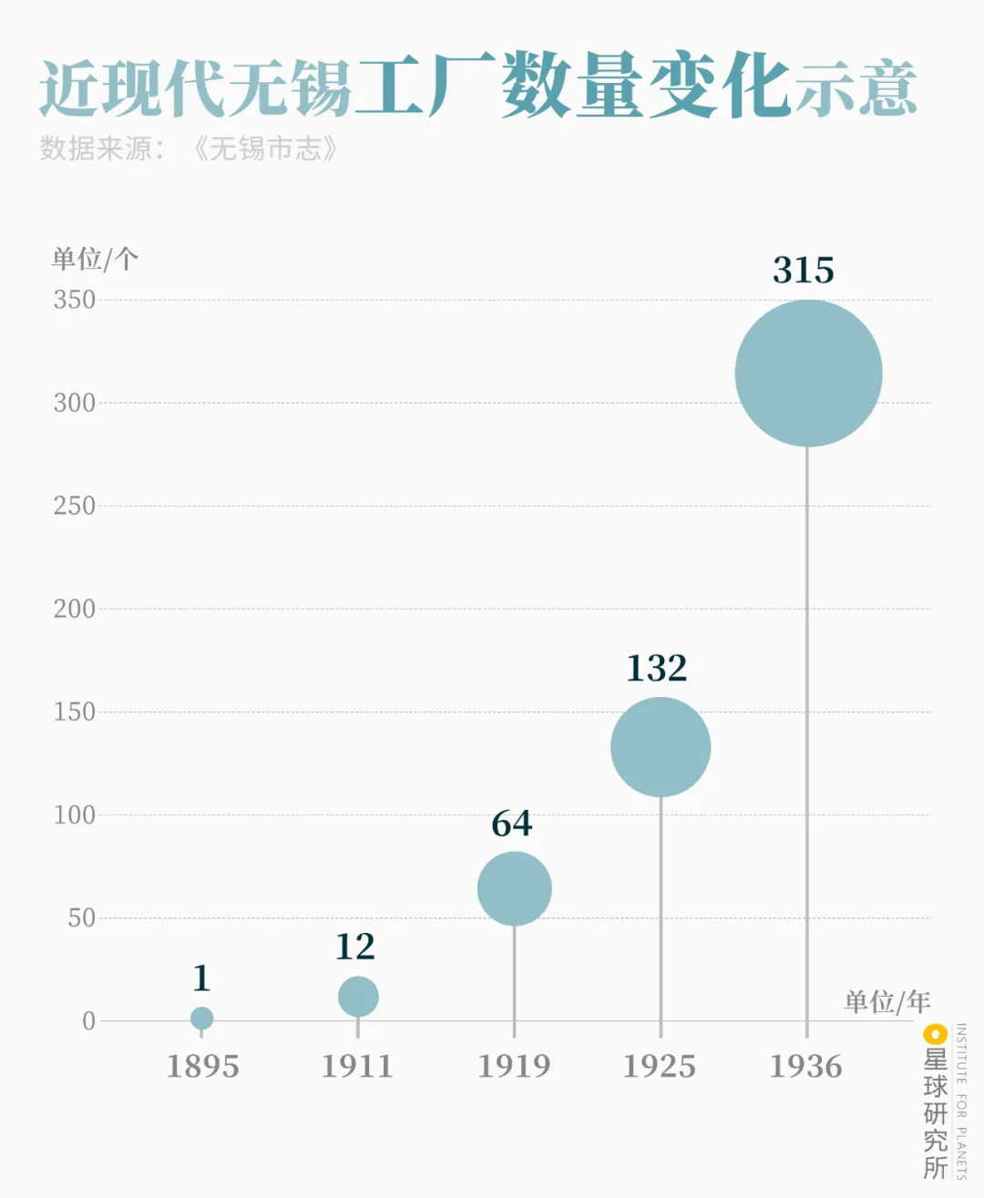 近現代無錫工廠數量變化示意| 製圖@陳隨/星球研究所