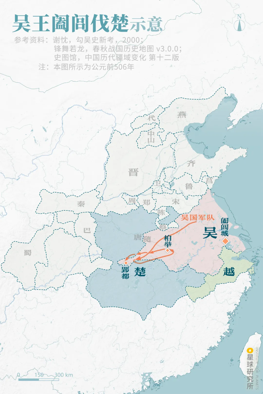 吳王闔閭伐楚示意;自此戰役後吳都遷至姑蘇(今蘇州) | 製圖@陳志浩&陳隨/星球研究所