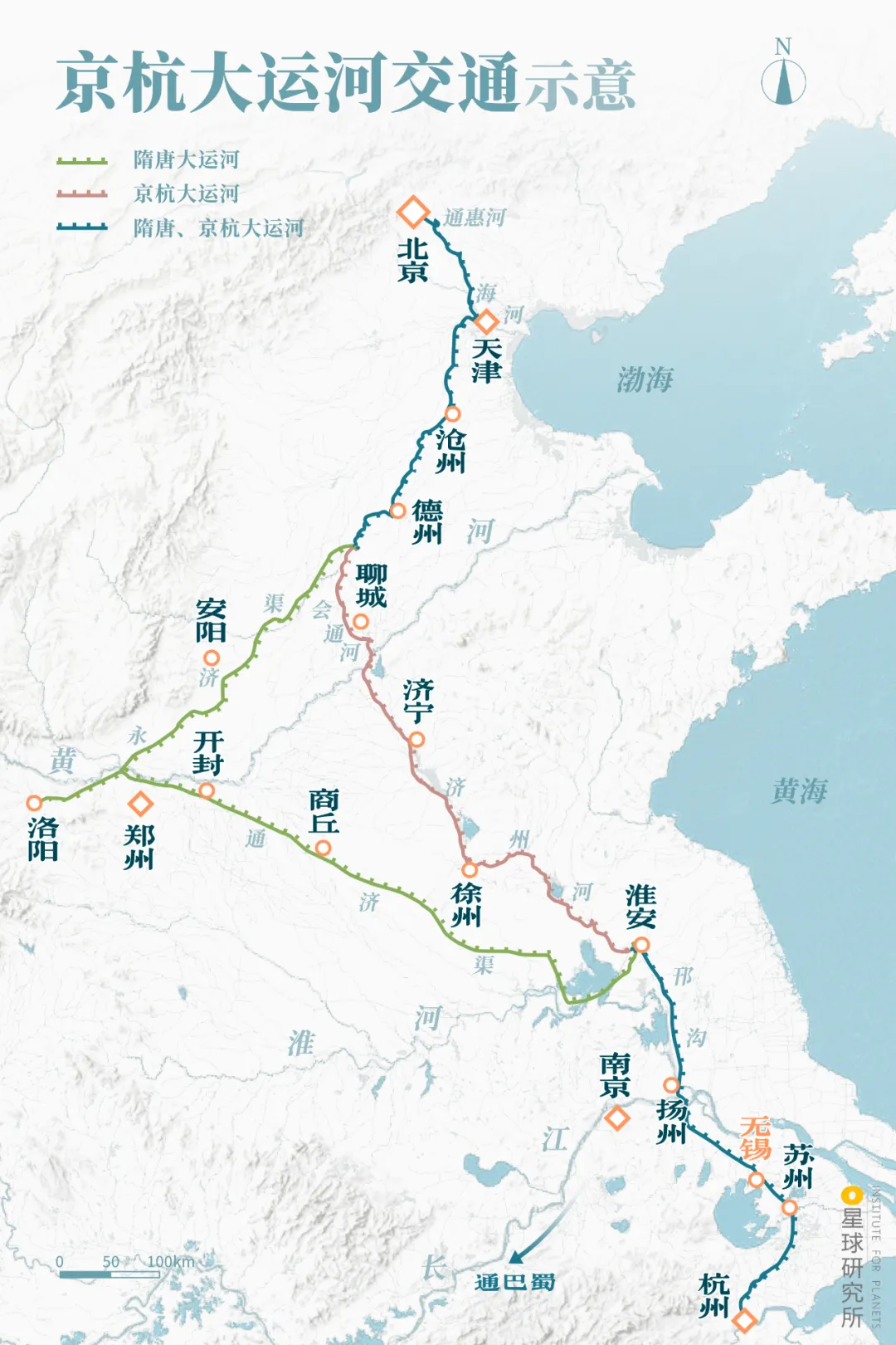 京杭大運河交通示意 | 製圖@陳志浩&陳隨/星球研究所