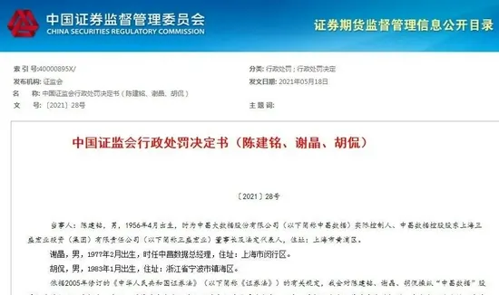 陳建銘還是上市公司中昌數據的實際控制人,今年5月,陳建銘曾因夥同他人控制101個賬户,瘋狂交易中昌數據28億餘元,獲利1100多萬,被處罰款並被採取10年證券市場禁入措施。