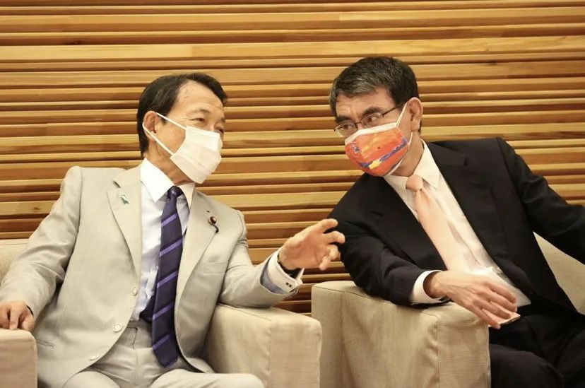 ● 日本副首相麻生太郎(左)與行政改革相河野太郎(右)/ 朝日新聞