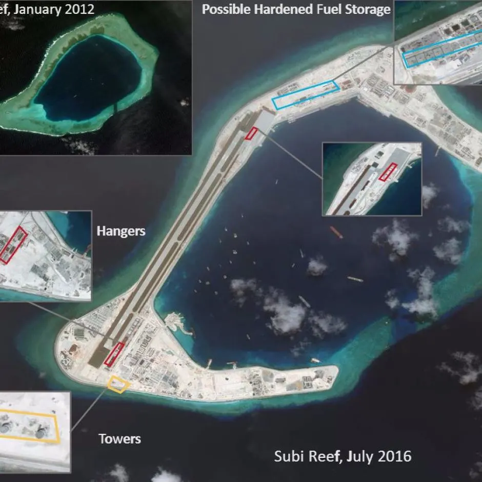 “中國過去4年的用沙量比美國過去1個世紀還多,中國甚至還在暗礁上堆積大量沙子,以此建設新的島嶼,擴大該國在南中國海的據點。”