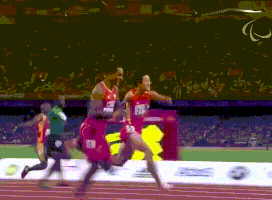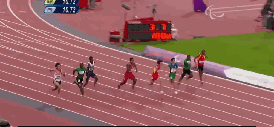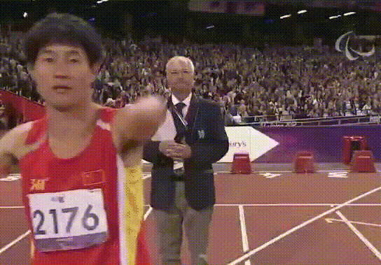 2012年倫敦殘奧會T46級百米決賽上,這位中國運動員揚起下巴,咬緊牙關,用身體的擺動代替雙臂,讓雙腿快速地輪換着,帶領自己抵達終點,拿下第一。