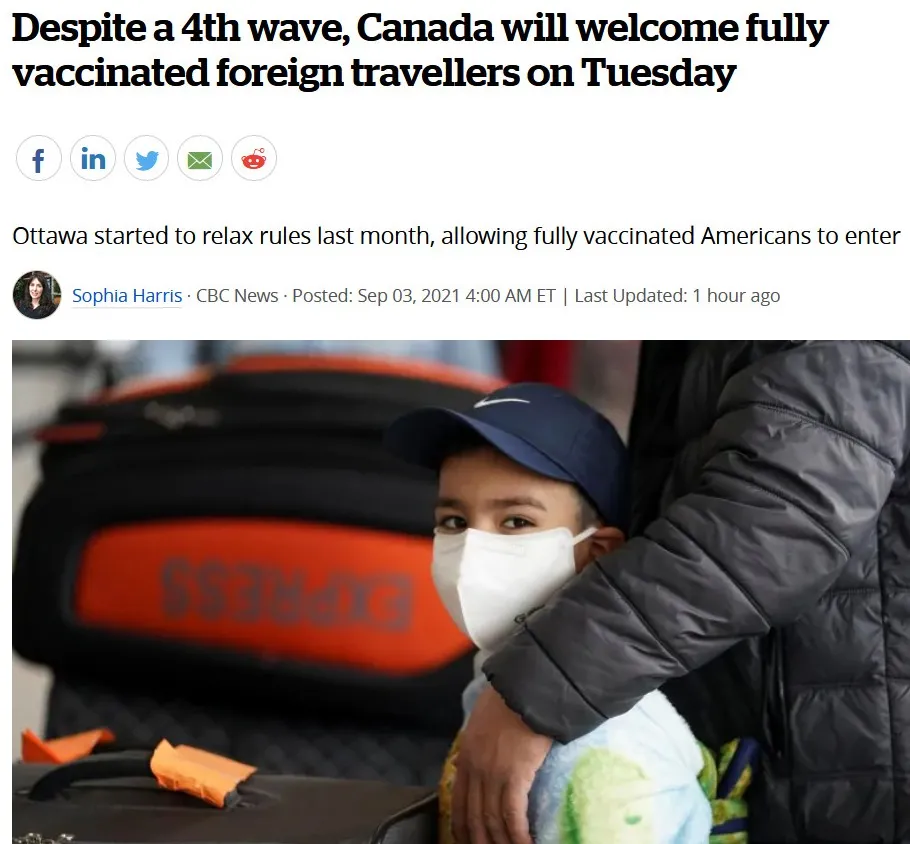 儘管第四波疫情仍然非常嚴重,但加拿大已經鐵了心,下週二(9月7日)開始,徹底打開國門,歡迎全球所有接種完疫苗的遊客!而且,這些人可以免除強制隔離。