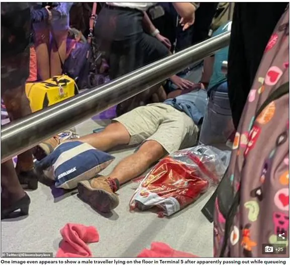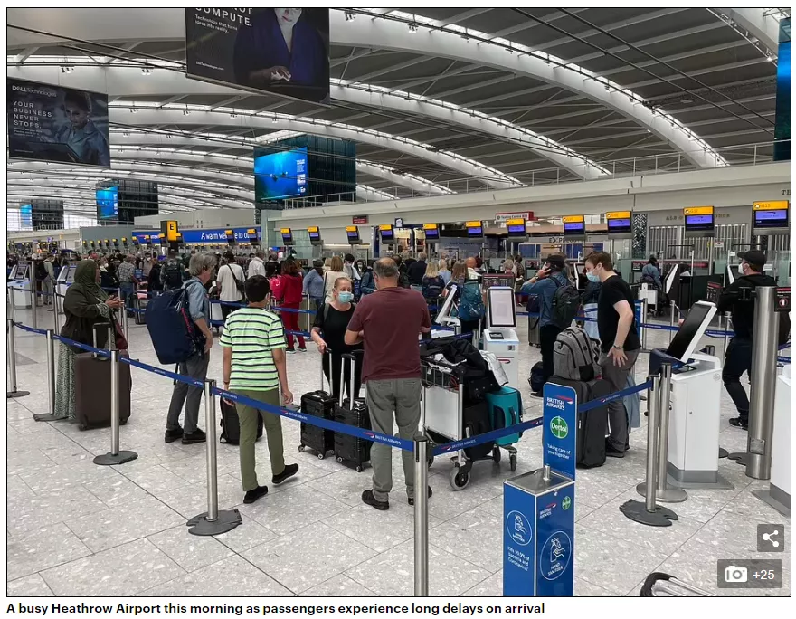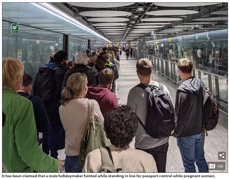 隔着一個大西洋,同樣的“沙丁魚”場景也在英國倫敦的希思羅機場(London Heathrow)出現。