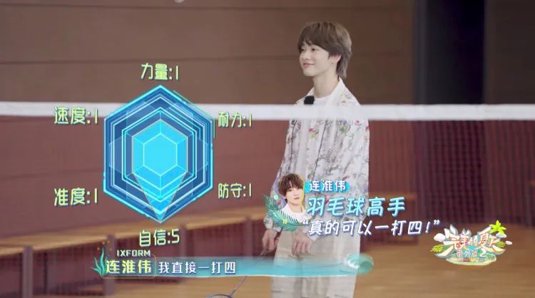 連淮偉的羽毛球要一打四,失敗後只能組隊出戰。大家商量好輸了做俯卧撐,男孩子奇怪的勝負欲就這麼被撩撥起來。發現有籃筐,眾人又輪流花式上籃,怎麼帥怎麼來。這還只是內部競爭呢,要是有女生觀眾相信賽況會更激烈。