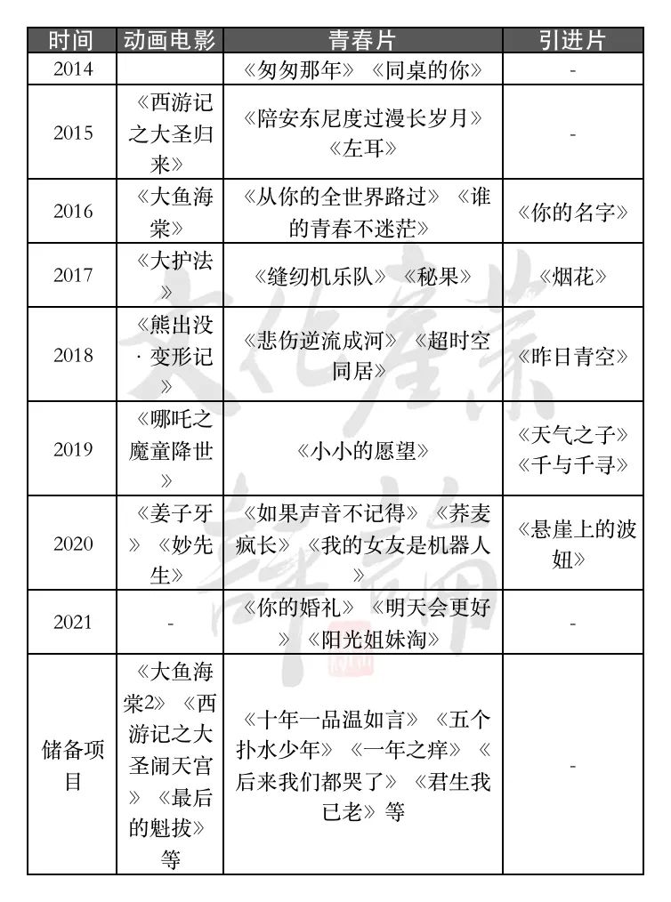 △光線傳媒動畫、青春、引進片概況(注:根據公開資料整理)