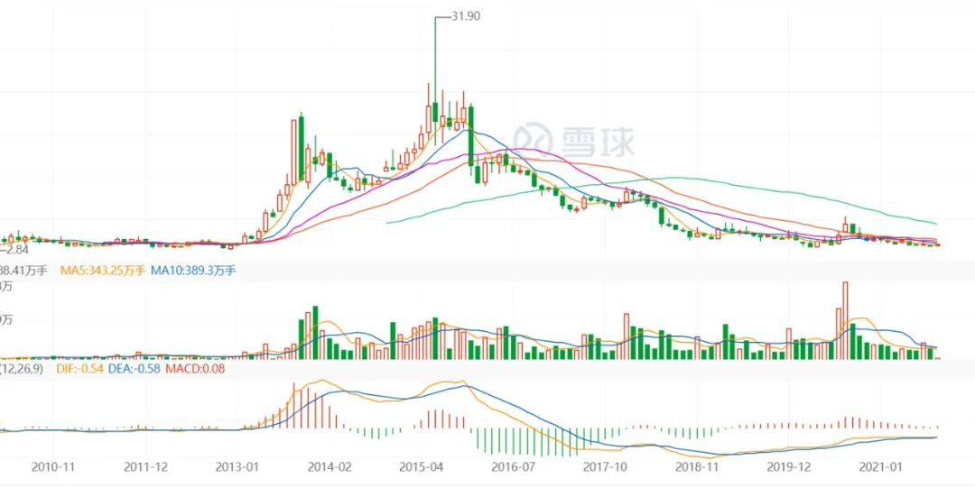 △2010-2021年華誼兄弟股價走勢圖(注:來自雪球網)