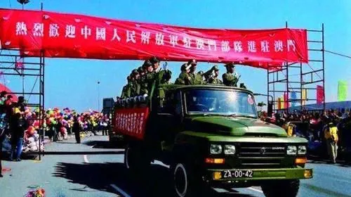 澳門迴歸軍隊進城時,大批澳門市民夾道歡迎,大聲高呼“歡迎解放軍”。