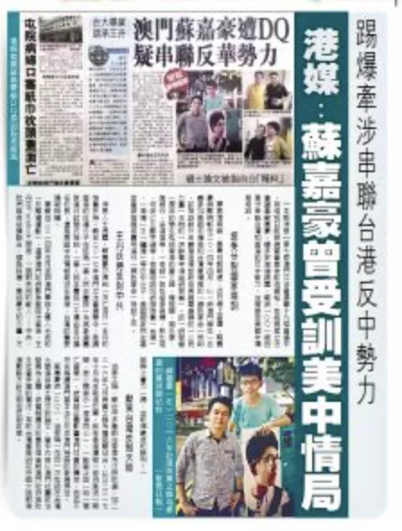 2014年,蘇嘉豪在這個“研習營”介紹了所謂“澳門經驗”,當年與他同去的還有這次同被DQ的鄭明軒。