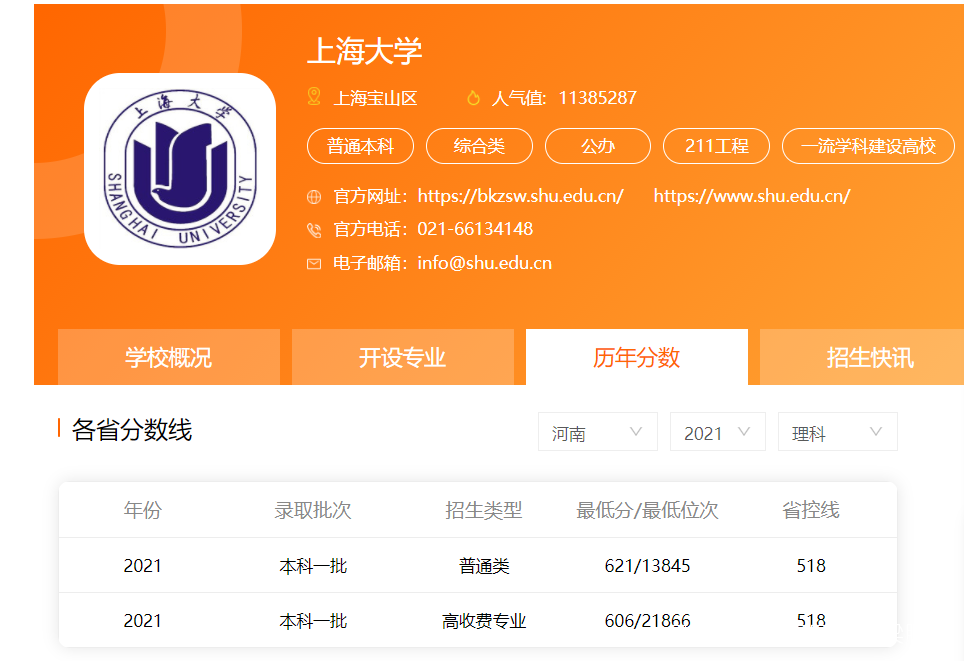 而在高考大省河南省,100萬考生裏面,需要考進前14000名左右,才能進上大,也就是高考成績進入前1.4%。