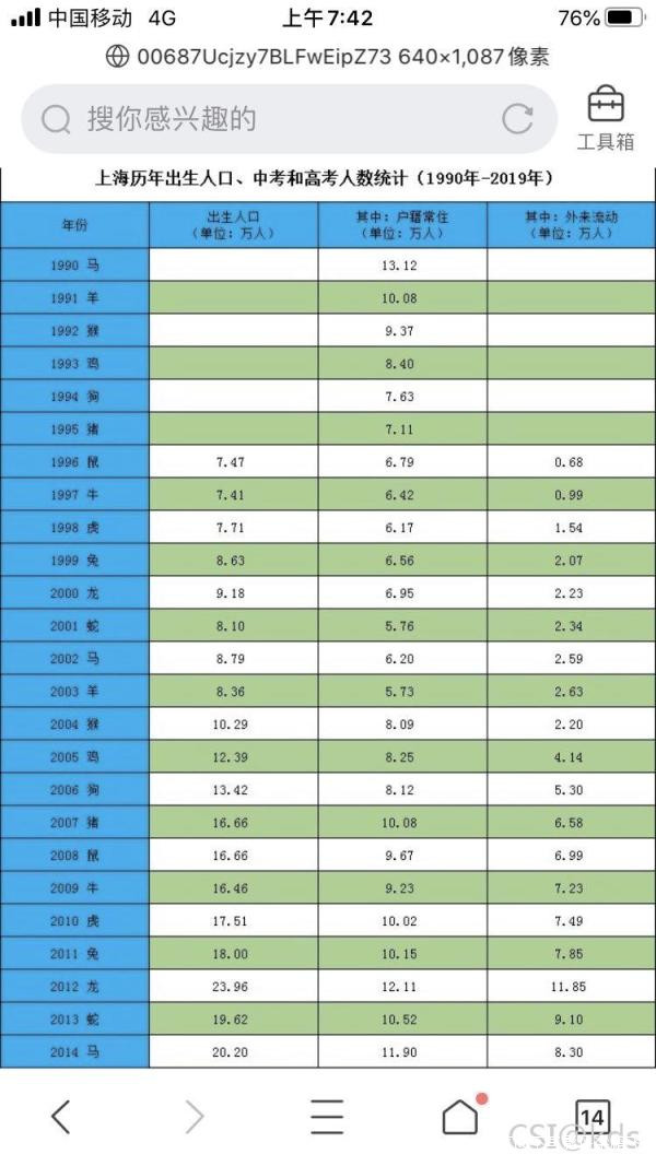 從這個表咱們就可以看出,最近10年新出生的孩子裏面,上海户籍的大概就是一半多一點。