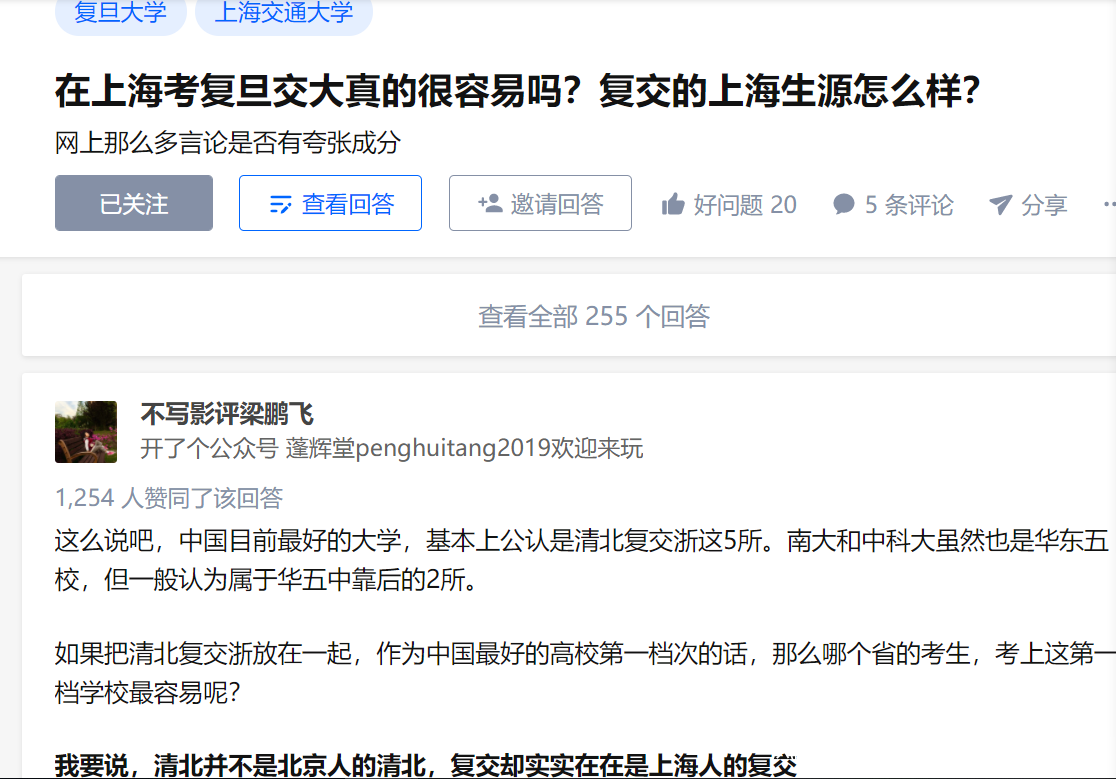 比如之前關於“上海考復旦交大真的很容易嗎”這個話題下,我寫了這麼一篇文章