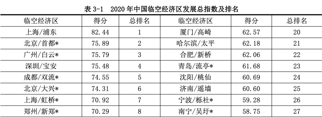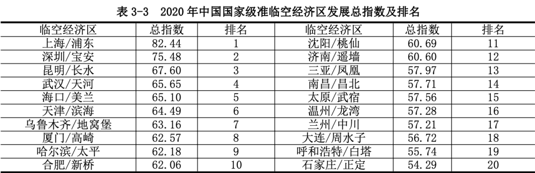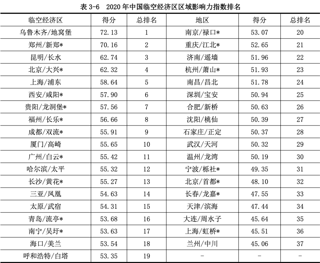 《報告》聚焦其中37個(2020年旅客吞吐量超800萬人次)機場所在地臨空經濟示範區與準示範區,將其現狀和發展潛力進行了評比。