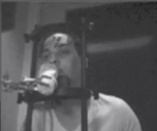 “聞汗水組”的志願者觀看視頻的時候,鼻腔會連接“鼻腔氣壓檢測管”,另外,還有一台紅外立體攝像機監測他們的眼動。