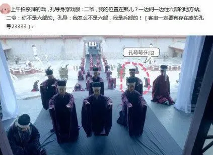 孔笙演了兵部的一個大臣,祭拜現場跪的端端正正。