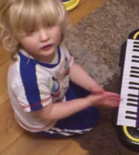 四歲時的小帕傑斯已經能夠用玩具鋼琴熟練彈奏《菲菲圓舞曲》的片段