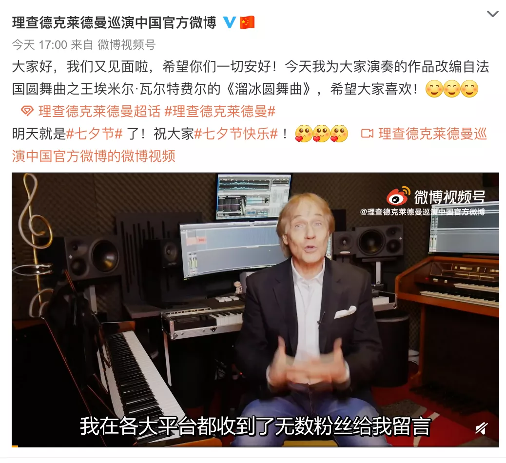 打着米其林招牌的炸雞店、歐美古典屆的刀郎、精通“財富密碼”的洋倒爺……曾經迷倒億萬國人的鋼琴王子,就這樣被貼上了各種網暴標籤。對此,克萊德曼從未反擊,甚至沒有半句辯駁。他只是默默守護着自己的事業,同自己全球各地的粉絲們親密互動。