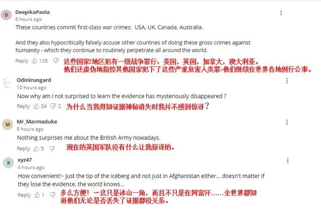 英國在阿富汗駐軍20年,類似的指控高達上千起,但英國國防部針對這些指控的調查在2019年底完全停止,沒有一人遭到起訴,儘管有的案件是那麼的證據確鑿。
