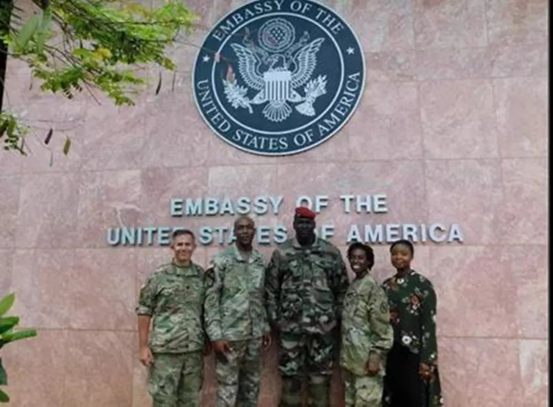 今天,社交媒體風傳一張杜姆布亞和美軍軍官在美國大使館門前的合影,發文者稱這次政變背後有美國的“影子”。