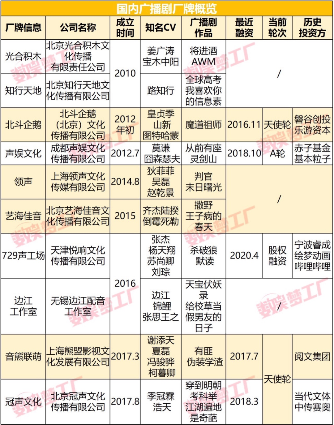 幾年後,光合積木、知行天地、北斗企鵝等配音工作室正式成立。隨着2016年知識付費的興起,廣播劇被收錄到有聲書概念分支,資本開始留意這塊蛋糕。