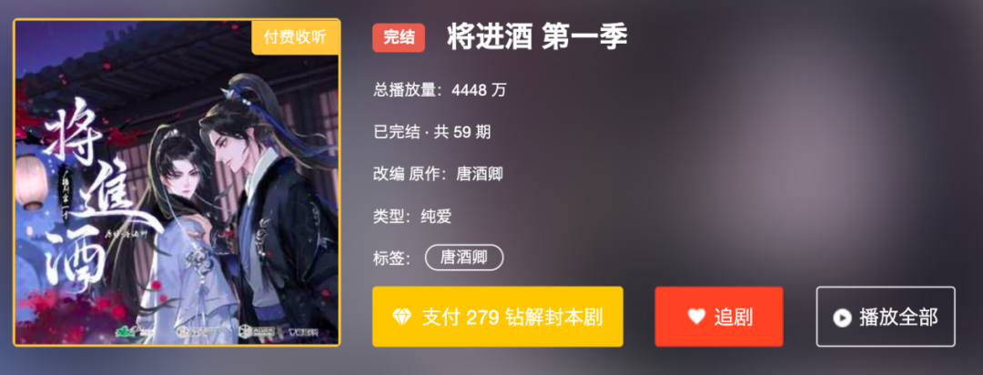 事實上,當下不少用户的付費熱情,也有相當一部分是為IP而非廣播劇本身買單。