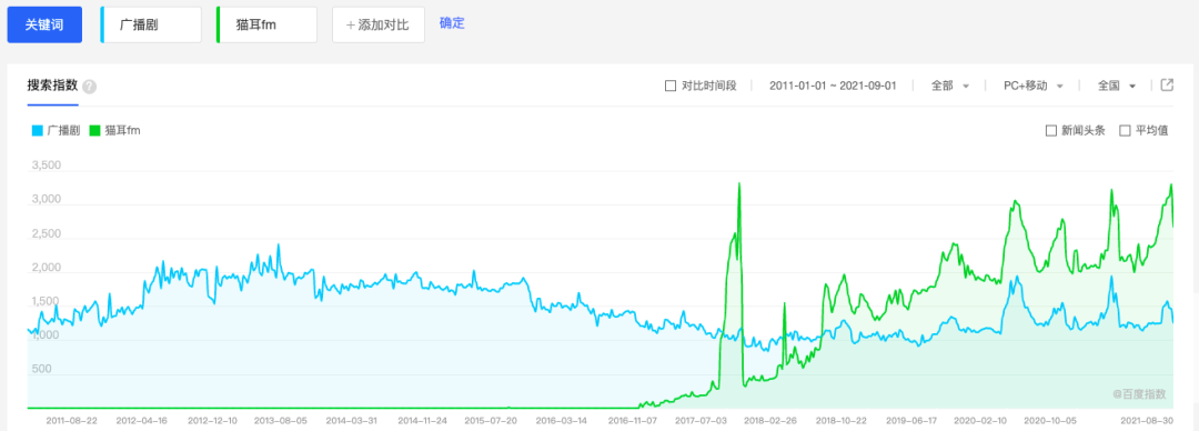 (“廣播劇”、“貓耳FM”等指數近年不時出現小高峯)