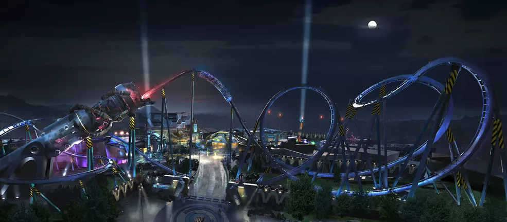 這是我墜喜歡的園區!也是整個環球影城尖叫聲最嘹亮的地方!!不為別的,主要是有個霸天虎過山車!給大家看下全景圖,很霸很虎很上天!!