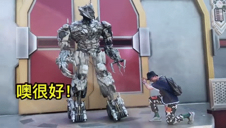我們排隊時駐場嘉賓是擎天柱,很幽默,都能參加脱口秀大會了。但很快!嘉賓就換成了威震天!!他一上來就怒氣沖天,可能是環球影城裏唯一一個懟你的人