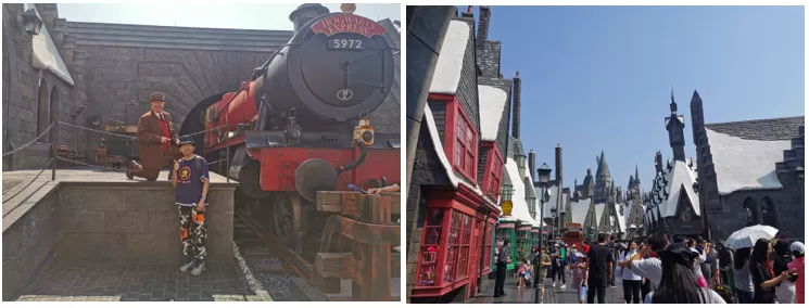 作為一名資深的哈迷,我一進去就直奔哈利波特。不得不説,這九又四分之三車站,這覆雪皚皚的屋頂,這遺世獨立的城堡,是哈利波特看了都會直呼霍格沃茲的程度