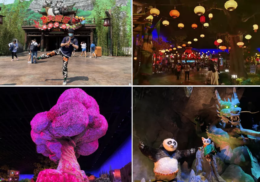 我個人很喜歡這個園區!玩了幾個項目我們都累得半死,**來到功夫熊貓像是回了快樂老家!**它位於過道處,全室內場景,冷氣超足又能吃飯,簡直是遊人的能量補給站!