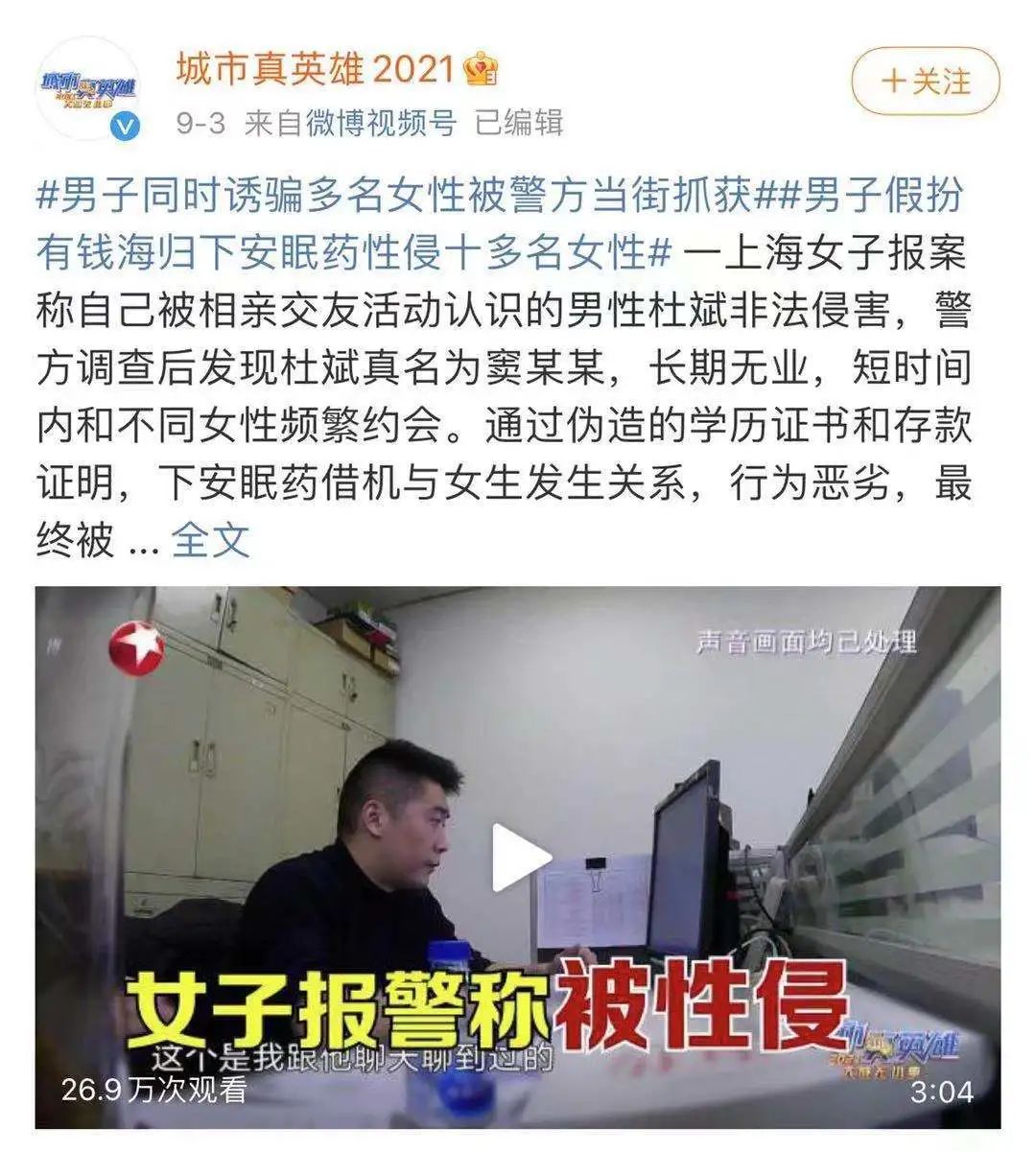 上海一男子假扮有錢海歸下藥性侵十多名相親女性,被警方當街抓獲!_風聞