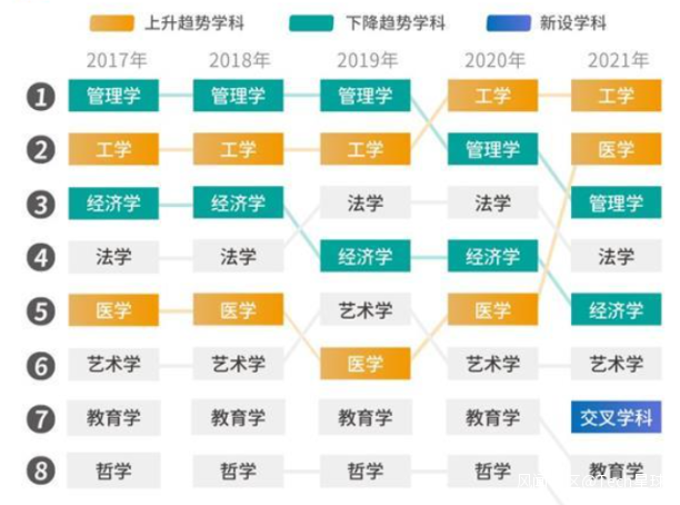 百度《2021高考搜索大數據》高校學科報考排名趨勢,醫學躍居第二