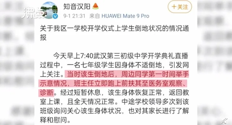 “第一時間”,武漢漢陽區教育局通報了此事: