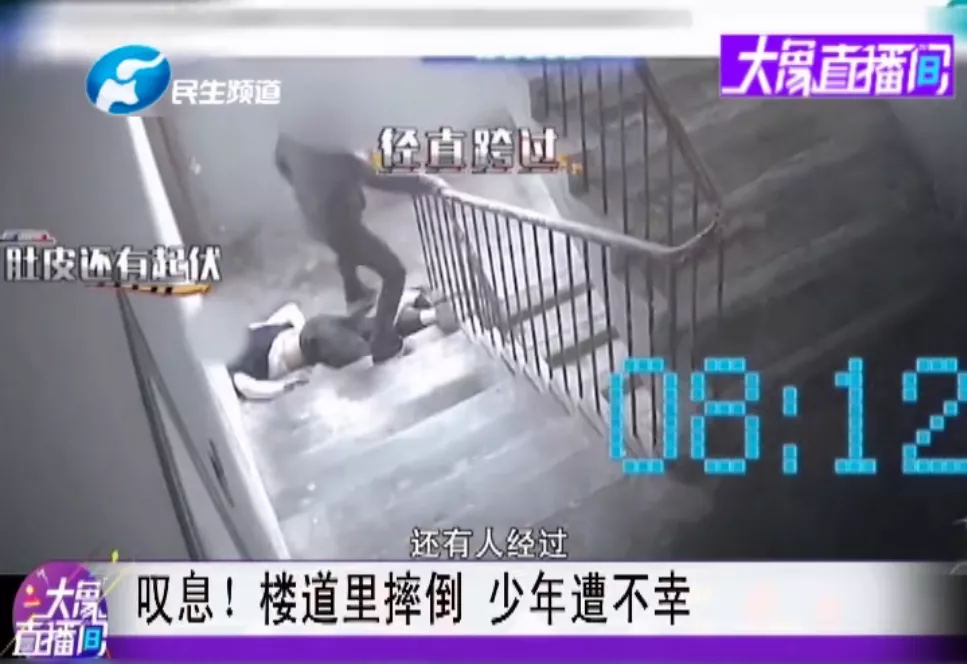 一位16歲的少年不慎摔倒在自家樓梯下,事後警察從監控看到,剛摔倒的時候,少年的肚皮在動,仍有生命體徵。
