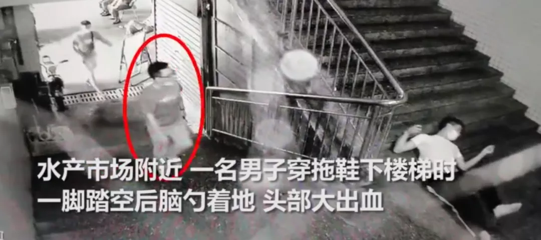 一名男子穿拖鞋下樓時一腳踏空,後腦勺着地,摔至頭部大出血,整個人四肢僵硬,不停抽搐。