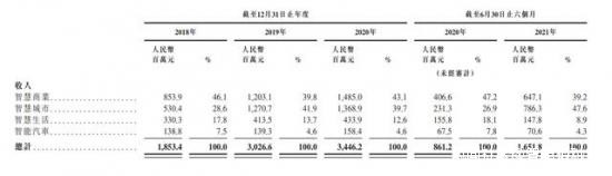 對商湯科技來説,這帶來了兩個問題。其一,對政府項目依賴過重。從目前商湯科技的主營業務來看,主要分為智慧商業、智慧城市、智慧生活和智能汽車四部分,其中,對接政府的智慧城市項目收入佔比,一直不低。