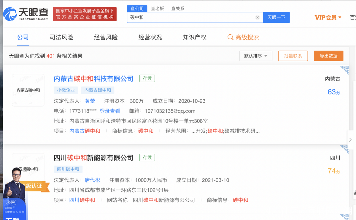 根據億歐智庫的統計數據顯示,2020年,我國碳中和一級市場投資規模為197億元人民幣,到2021年上半年,整個碳中和一級市場投資規模達到405億元。據天眼查App數據顯示,近一年內註冊的碳中和公司就有400家。
