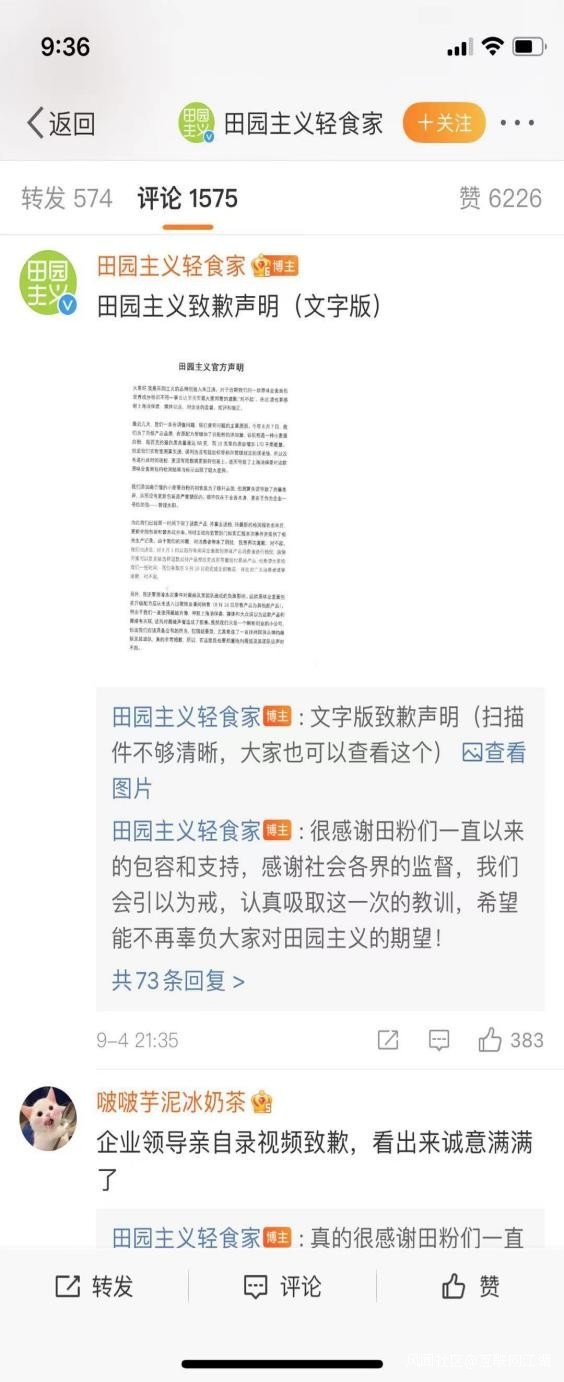 田園主義微博道歉
