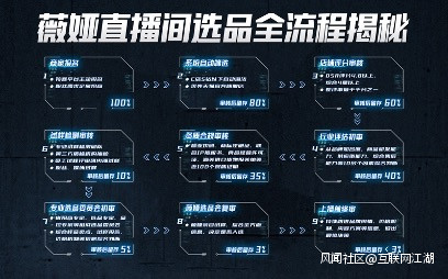 據悉,一家品牌想要進入薇婭直播間,需要經過9道程序篩選。