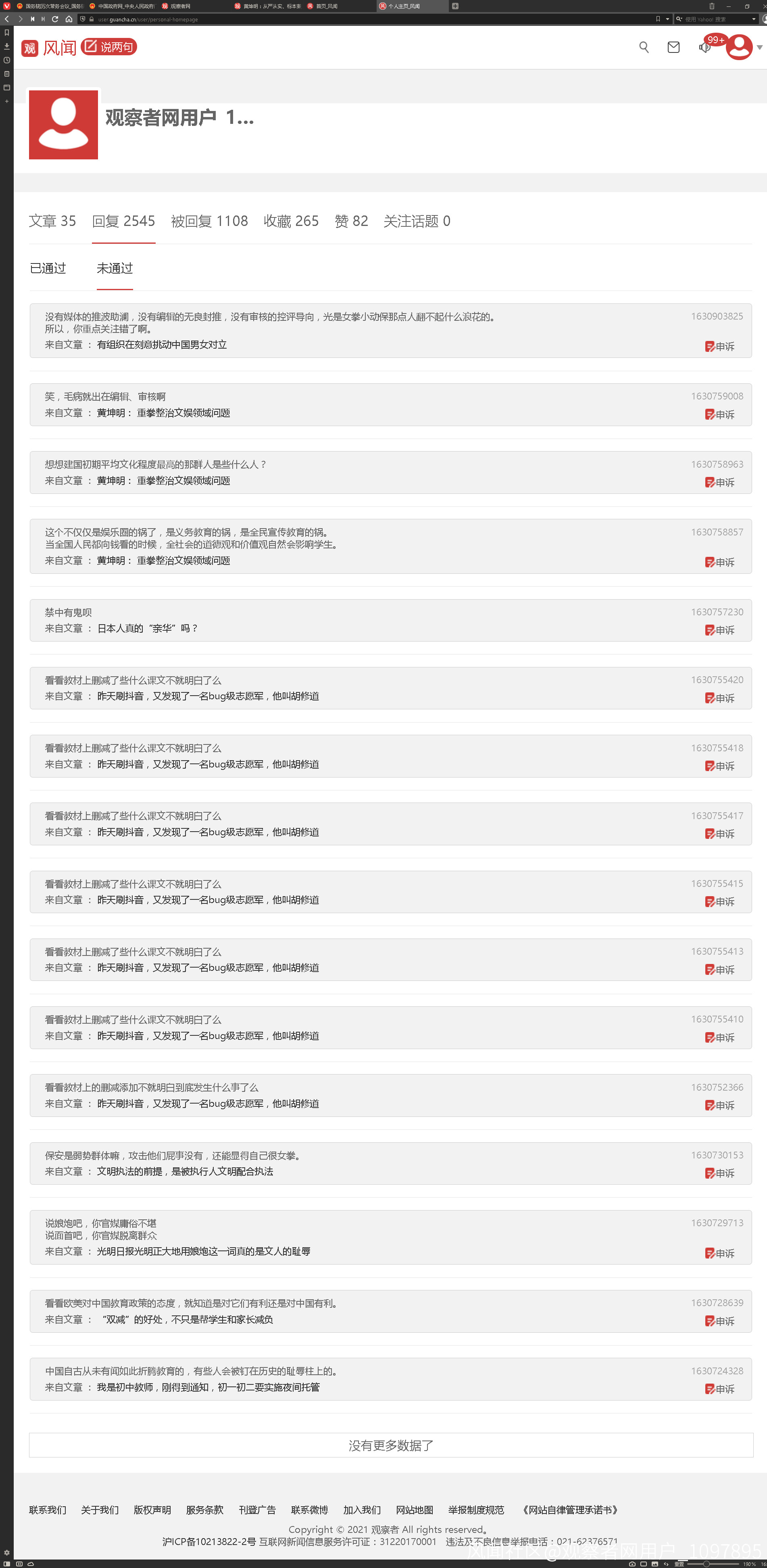 莫非觀網審核小編也在控評導向嗎?否則我這些回覆到底違了什麼禁呢?_風聞