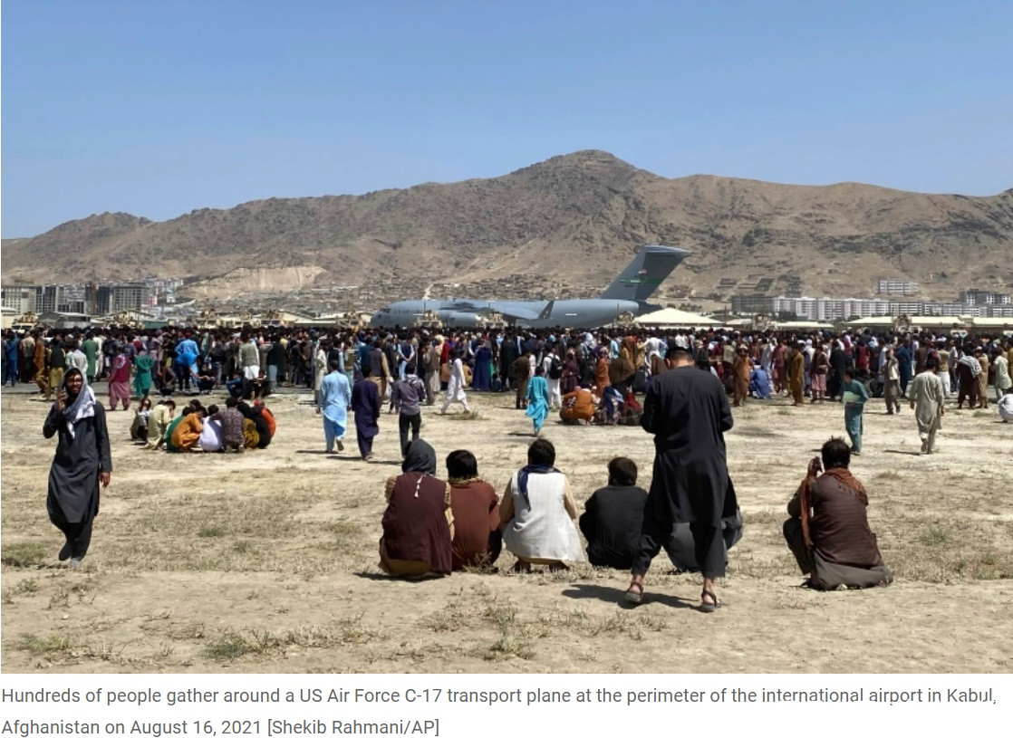 星期一晚上在喀布爾機場跑道上排隊的是最後五架 C-17 在混亂和致命的空運撤離後離開該國,這標誌着美國參與阿富汗戰爭的結束。在最後幾個小時,跑道上沒有更多的火箭防禦系統來保護他們,機場控制中心也沒有人指揮他們出去。