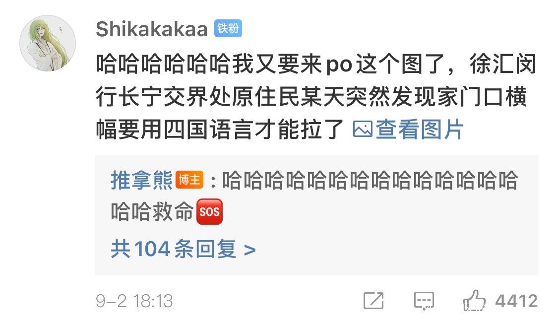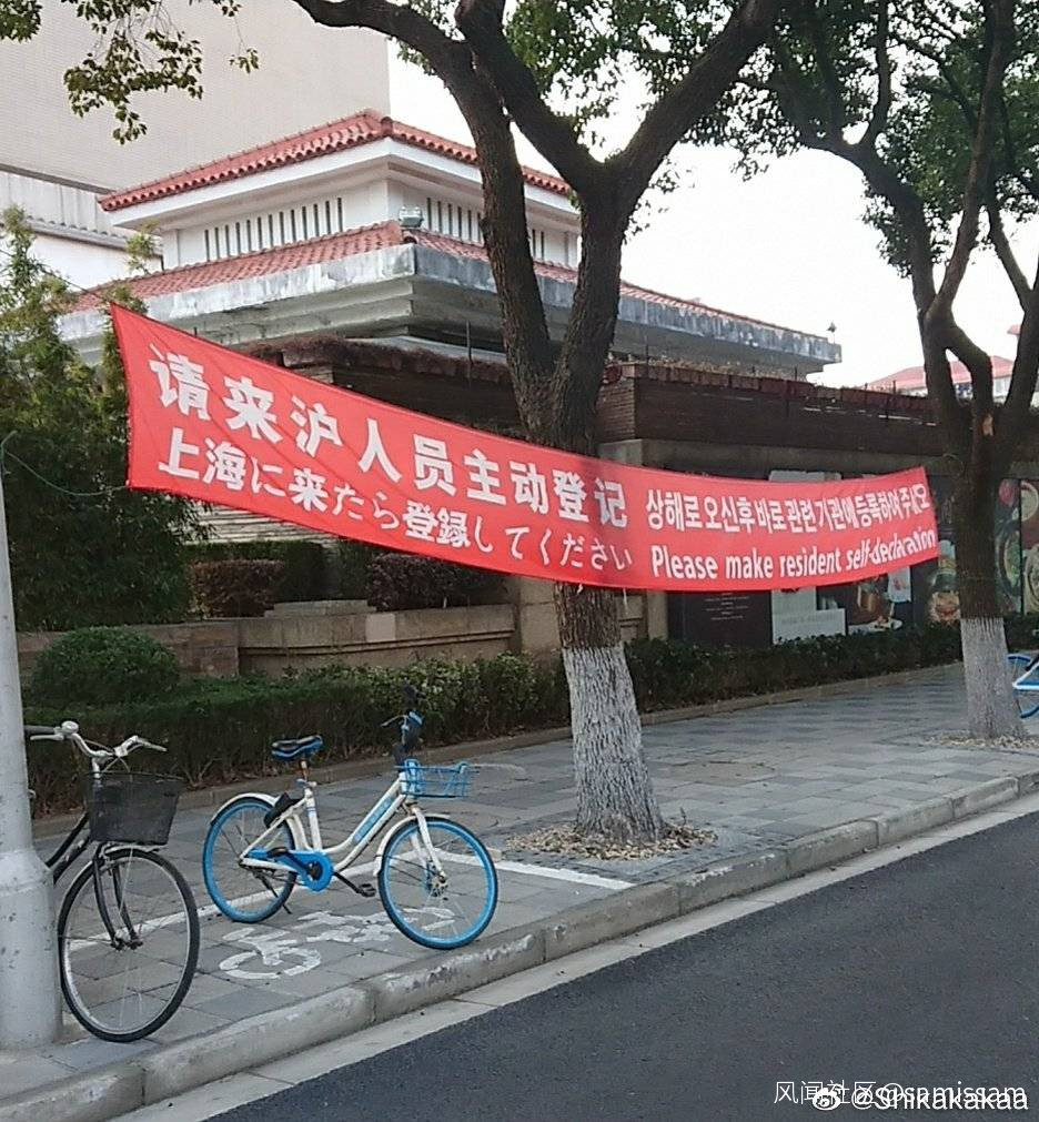 還有徐匯閔行長寧交界處的原住民網友發現家門口橫幅有四國語言