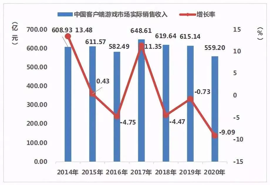 在《2020年中國遊戲產業報告》中指出:2020年國遊戲市場實際銷售收入達到2786.87億元,而客户端遊戲(單機+網遊)的實際銷售收入為559億,佔總收入的20%左右。