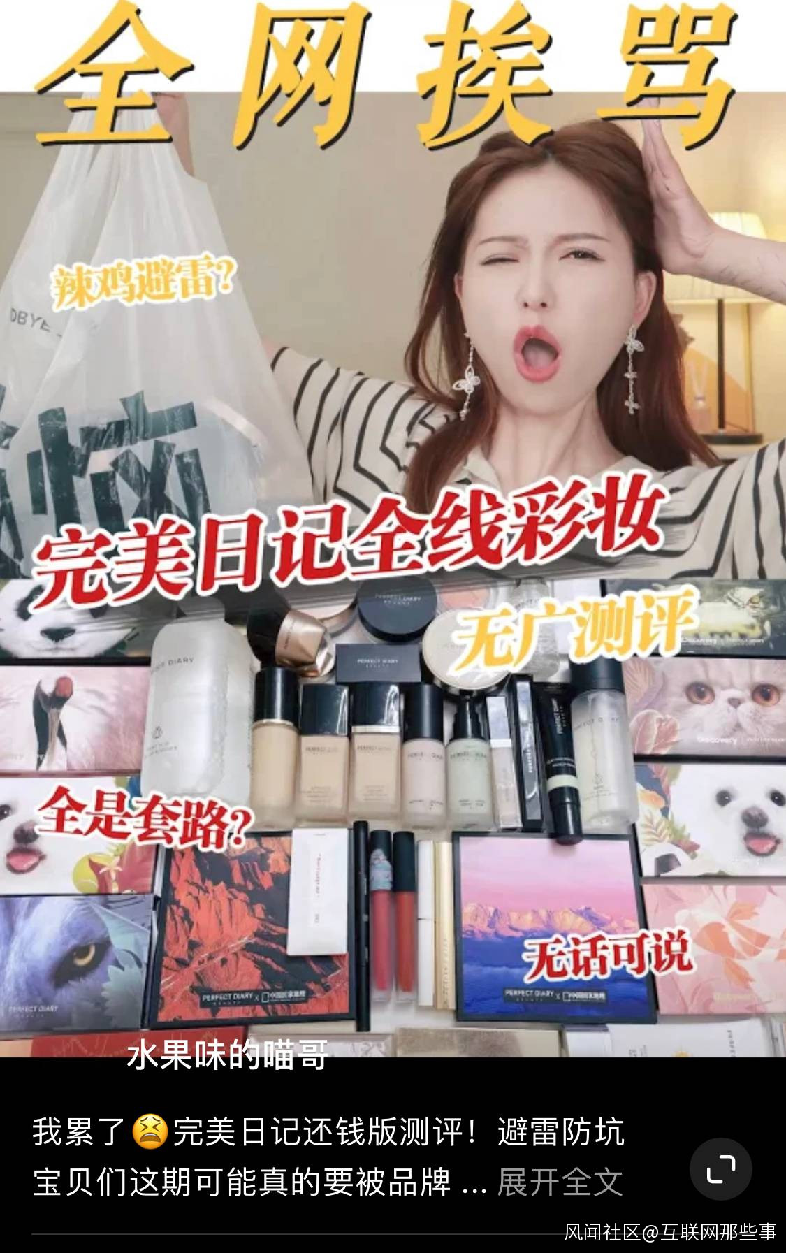 另外,口紅質地拔幹、卡唇紋、眼影粉質粗糙、飛粉等問題讓人大呼“踩雷”,甚至小紅書上有300多位用户使用完美日記的口紅後得了唇炎……在很長一段時間裏,完美日記“產品質量”備受爭議。