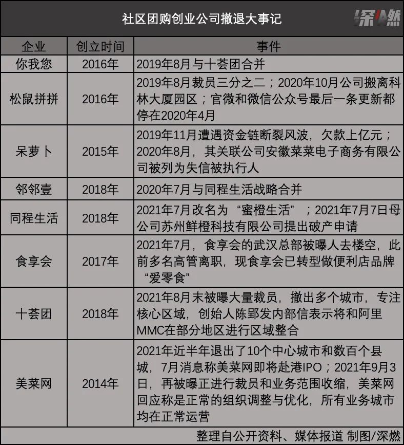 社區團購創業公司撤退大事記 製圖 / 深燃