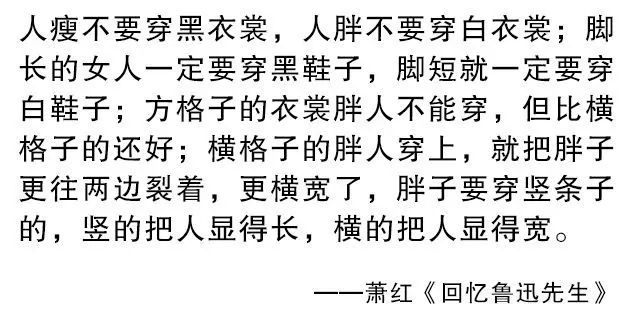 蕭紅在《回憶魯迅先生》中,披露了很多迅哥兒不為人知的八卦。某次,蕭紅穿着新奇的大紅色上衣去魯迅家做客,問他衣服漂不漂亮。